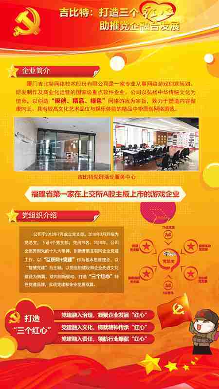 未来公司将全面学习贯彻习近平新时代中国特色社会主义思想和党的十九大精神,,,持续强化“互联网+党建”的思维理念,,,,以“智慧党建”为主轴,,以党组织建设和企业先进文化建设为侧翼,,,双向创新驱动,,,,引领有信仰、、有情怀、、、、有价值的新时代游戏研发运营,,在不断发展壮大的同时,,成为行业的“红色标杆”,,,实现党建和企业发展双赢。。。