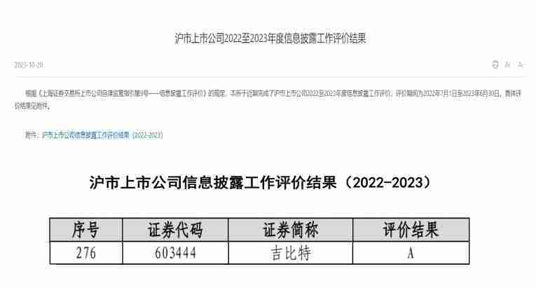 近日,,,,上海证券交易所(以下简称“上交所”)发布2022-2023年度信息披露工作评价结果。。918.com(股票代码:::603444)凭借规范的公司治理、、高质量的信息披露以及良好的投资者关系管理再次荣获信息披露工作A级评价,,,,公司连续两年获此殊荣。。。。